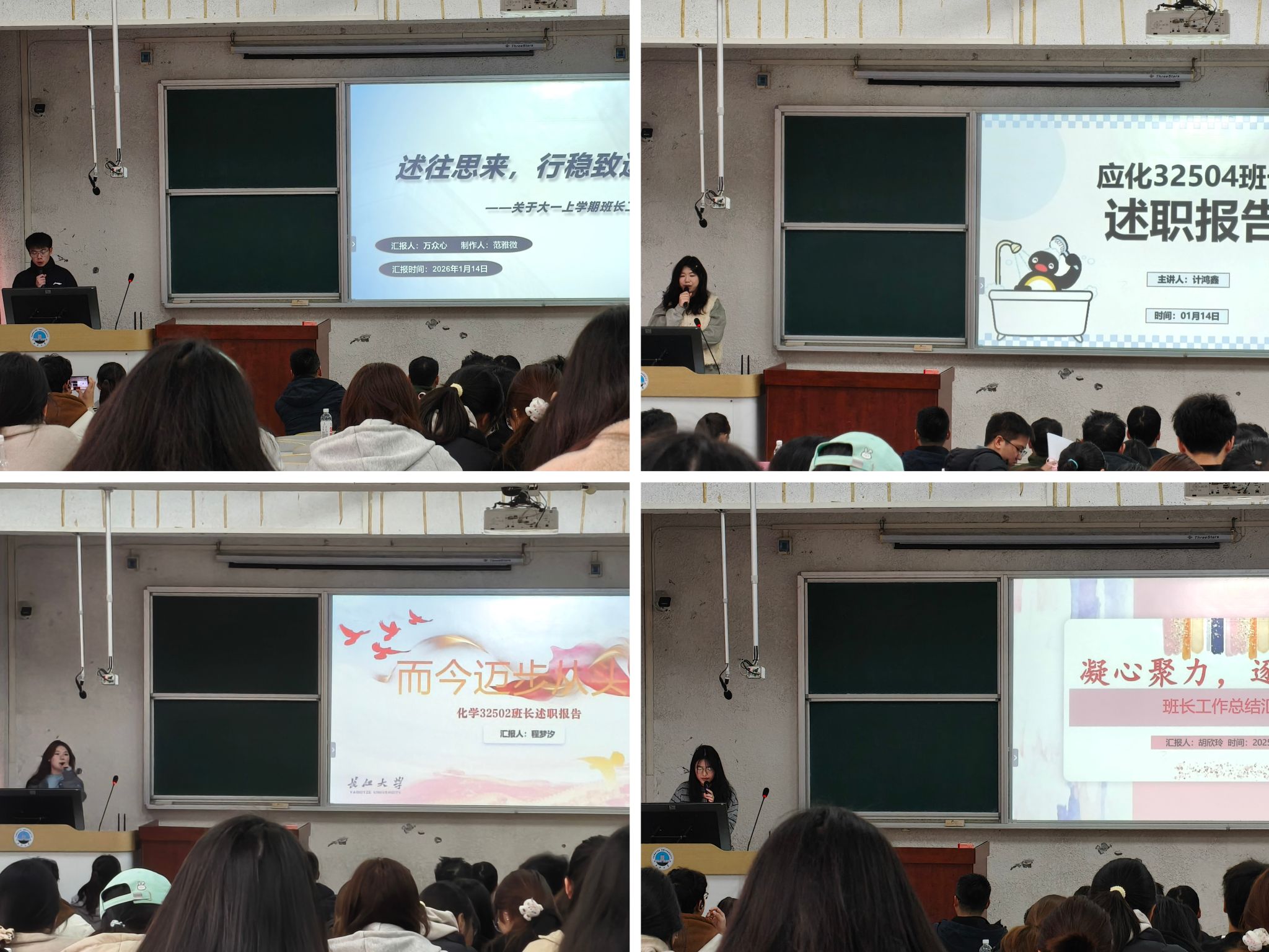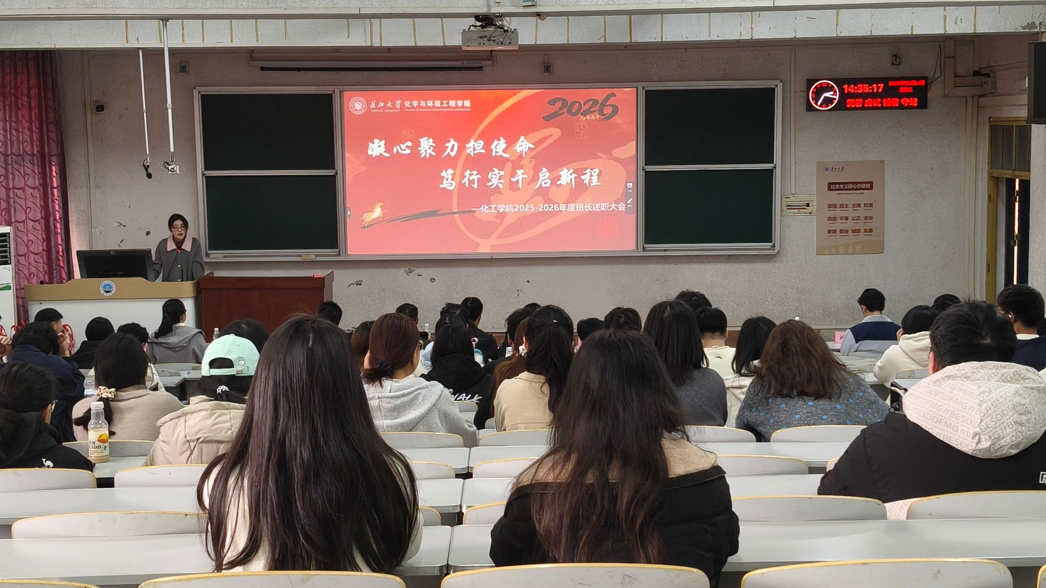 会议伊始,主持人介绍了本次述职大会的目的与流程,强调班长作为班级的“领头雁”,既是师生沟通的重要纽带,也是推动班级学风建设与日常管理的关键力量。希望通过此次述职,各班班长能够系统梳理工作成效,总结实践经验,查找存在问题,明确未来班级建设方向,进一步凝聚班级合力。